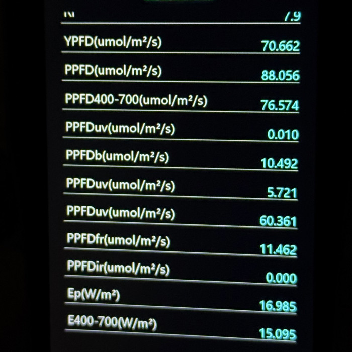 Замеры производятся на стандарте высоты, что в переводе с дюймов, грубо, 20,5 см. PPFD измеряли на высоте 17-20 см от верхушек растений – именно в зоне активного поглощения света во время работы фитолампы.