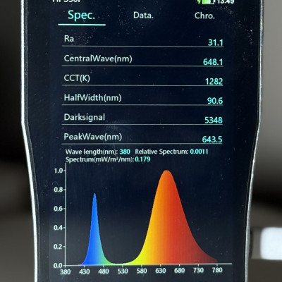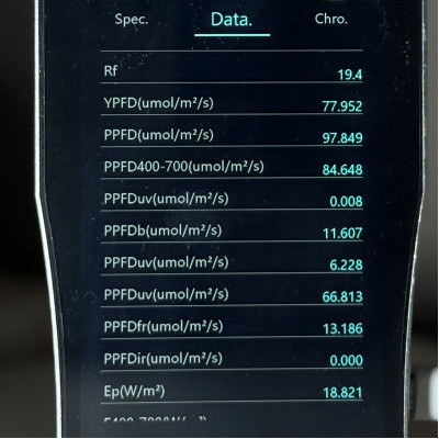 Замеры производятся на принятом во всем мире стандарте высоты, что в переводе с дюймов, грубо, 20,5 см. PPFD измеряли на высоте 17-20 см от верхушек растений – именно в зоне активного поглощения света во время работы фитолампы.