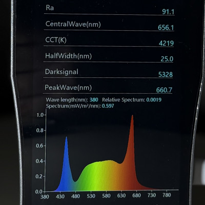 - Спектр свечения: спектр фотосинтеза (температура цвета белого света 6000К + красный спектр 660 нМ)