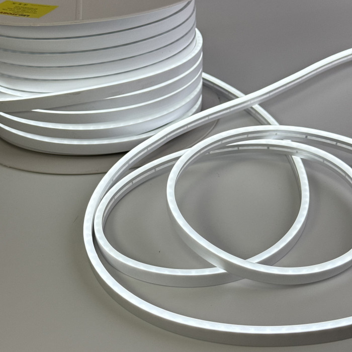 Холодный белый LED неон (6500K) создает четкое и яркое освещение, подчеркивающее современный стиль помещения и придающее пространству технологической чистоты. Его холодный свет подходит для рабочих зон, офисов, магазинов, выставочных залов и любых проектов, где важны аккуратность и высокий контраст.