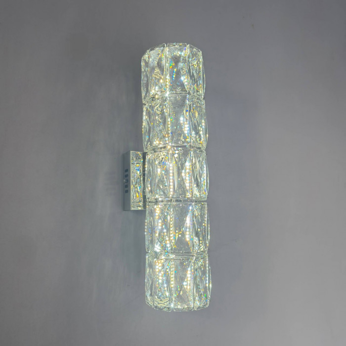 Настенный светильник с хрустальными сегментами – это элегантное решение для зонального освещения, сочетающее современный дизайн и функциональность. Изготовлен из металла и стекла, имеет высоту 39 см и ширину 10 см, идеально подходит для освещения площади 1–2 м². Благодаря мощности 10W и питанию 220V, светильник обеспечивает яркий, но энергоэффективный свет. Переключатель позволяет выбирать одну из трех температур свечения – теплую (3400K), нейтральную (4100K) или холодную (6000K), что позволяет адаптировать атмосферу пространства под настроение или функцию. Прозрачные хрустальные сегменты создают эффект мерцания, придавая интерьеру глубины и изысканность. Идеальный для спальни, коридора или гостиной этот светильник становится не только источником света, но и декоративным акцентом.