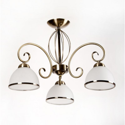 Потолочный светильник с тремя плафонами — сочетание классического стиля и современной функциональности. Каркас выполнен из металла с бронзовым покрытием, что придает изделию элегантность и стойкость к повреждениям. Стеклянные матовые плафоны обеспечивают мягкое и равномерное рассеяние света, создавая уютную атмосферу в любом помещении.