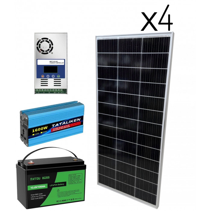 - солнечных панелей в количестве 4 штук*170Вт, которые вырабатывают электричество для зарядки аккумулятора.