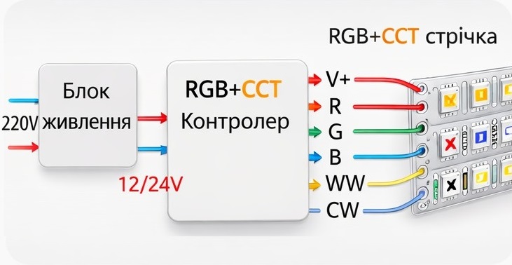 Подключение RGB+CCT ленты