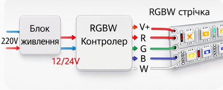 Подключение RGBW ленты