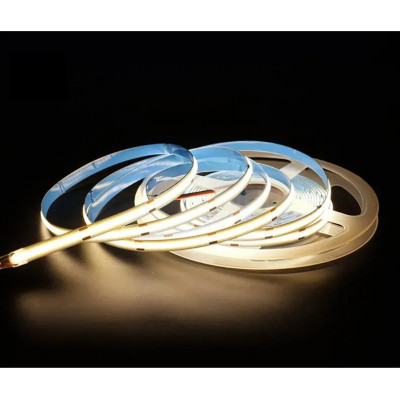 Тонкая ширина всего 8 мм и возможность нарезать ленту каждые 10 см делают монтаж максимально простым и гибким, позволяя адаптировать освещение под любые дизайнерские решения. Степень защиты IP20 подразумевает использование в сухих помещениях, а современная технология COB обеспечивает долговечность и стабильность света на долгие годы.
