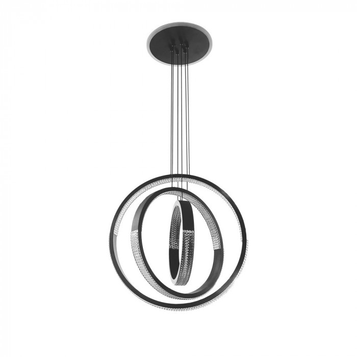 Этот подвесной светодиодный светильник – технологическая скульптура, сочетающая геометрию, свет и контроль. Три кольца со встроенными LED-элементами SMD 2835 создают многоуровневое освещение, которое меняется по вашему настроению: от теплого 3000K до холодного 6500K. Мощность регулируется, есть ночной режим, а управление осуществляется с пульта – удобно, интуитивно, современно.