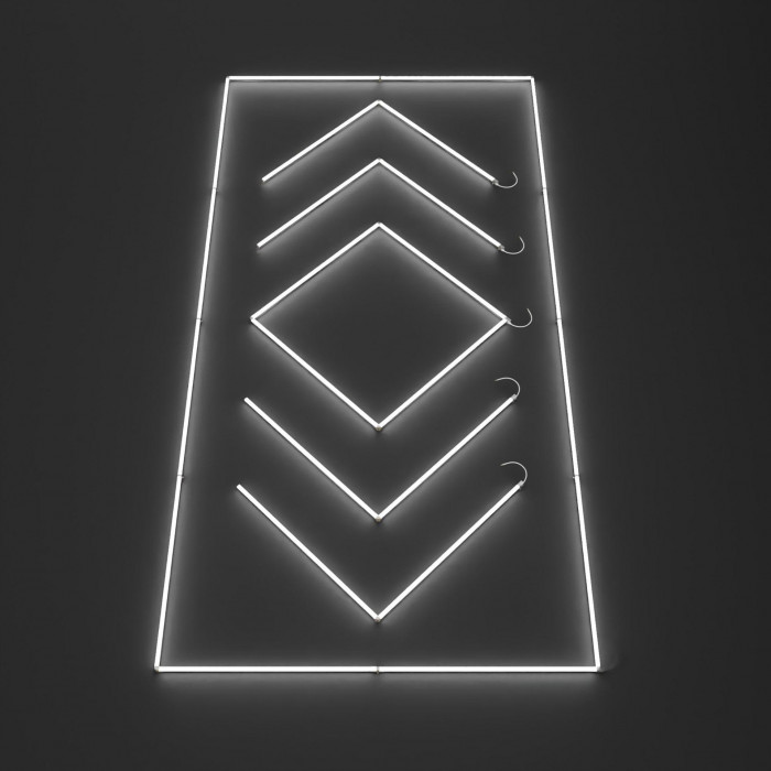 Конструктивно светильник представляет собой модульную систему, а не сплошную массивную конструкцию. Он состоит из 24 светодиодных линий длиной 1176 мм: 12 элементов формируют основную раму 2430×4835 мм, еще 12 – шесть декоративных «стрел». Соединение осуществляется с помощью угловых коннекторов, которые одновременно обеспечивают надежную механическую крепь и электрический контакт по принципу магистральных светильников. Благодаря разборной конструкции светильник легко транспортировать – по габаритам и удобству это сравнимо с обычной лампой.