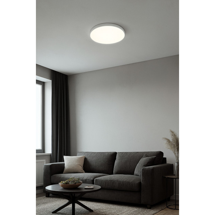 Благодаря мощности 80 Вт и световому потоку 5200 Лм светильник обеспечивает яркое и равномерное освещение больших помещений: просторных гостиных, студий, офисов или кухонь. Высокий индекс цветопередачи RA>80 гарантирует естественную цветопередачу, а класс энергоэффективности A+ — рациональное потребление электроэнергии.