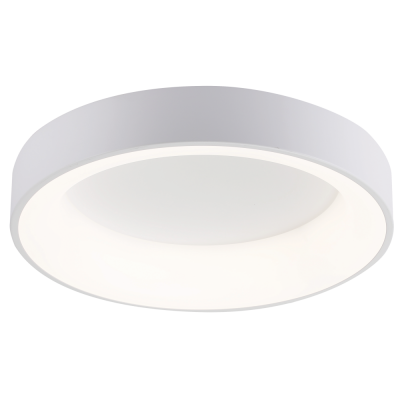 Корпус выполнен из крепкого металла и качественного пластика. Диаметр 600 мм и высота 100 мм делают его броским акцентом в современном интерьере, не перегружая пространство. Монтируется на потолок.
