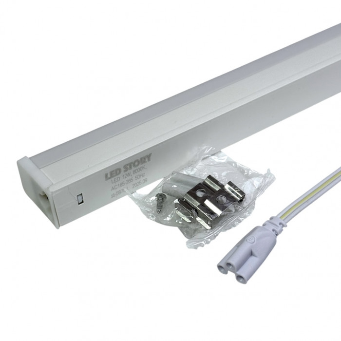 Лед светильник типа Т5 с мощностью 12Вт имеет холодный спектр свечения - 6000К, который хорошо передает контраст и подчеркивает контуры и текстуры подсвечиваемых предметов.