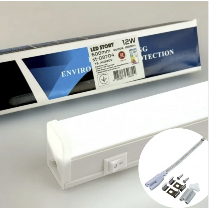 Универсальный светодиодный светильник с компактными размерами и широким спектром сфер использования. Его можно использовать не только для производственных или коммерческих помещений, но и в домашних условиях, например, для освещения рабочей зоны кухни, цветов на подоконнике или внутри шкафа. Он идеально подойдет для освещения помещений с ограниченными возможностями для подключения или сложной геометрией, так как несколько светильников (до 10) можно соединить в один (с помощью специальных коннекторов) и подключить к одному источнику питания. Светодиодный светильник Т5 очень прост в монтаже - в комплект входит все необходимое для крепления, а кнопка включения светильника, размещенная на корпусе, сделает использование светодиодного светильника невероятно удобным.