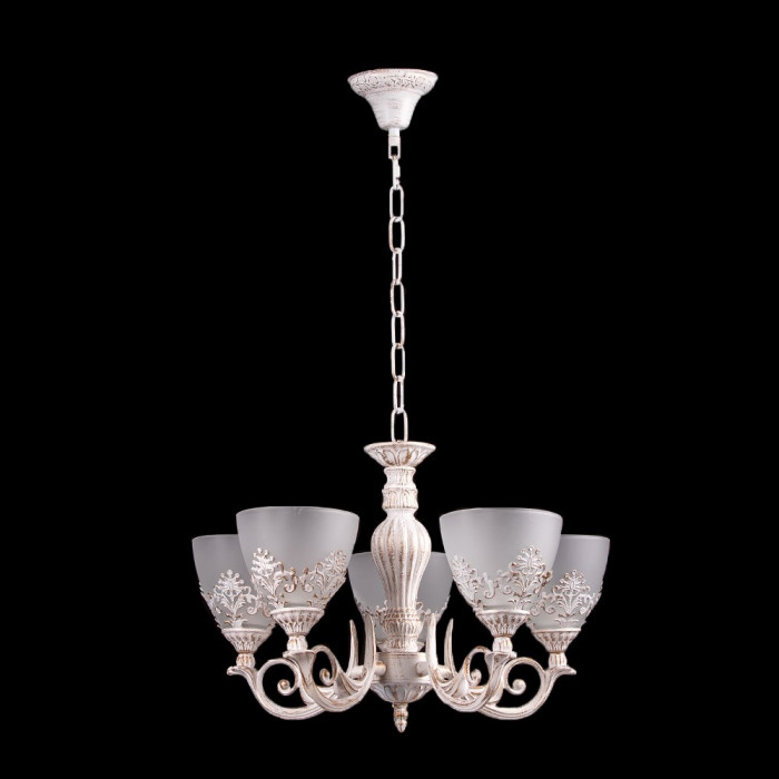 Эта модель сочетает в себе элегантность классического дизайна с универсальностью белого цвета. Пять стеклянных плафонов с матовым покрытием и декоративным узором обеспечивают мягкое, равномерное освещение, идеальное для гостиной, спальни или столовой.