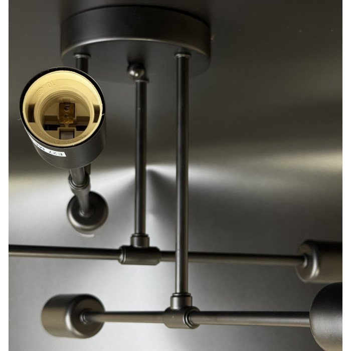 Потолочная люстра на 6 ламп с цоколем E27 в черном цвете – это выразительный световой каркас, объединяющий индустриальную эстетику с геометрической симметрией. Три металлических штанги, выходящие из центрального основания, образуют четкую трехмерную структуру, на концах которой размещены открытые патроны без плафонов. Такой дизайн позволяет полностью контролировать характер освещения – от теплых ламп накаливания до ярких LED, филаментных или других вариантов. Максимальная мощность каждой лампы – до 60Вт. Черный корпус придает контрасту и архитектурной выразительности, особенно в интерьерах стиля лофт, модерн или минимализм. Размер 460×230 мм, крепление на планку, рабочее напряжение 180–265V и степень защиты IP20 – все для стабильной работы в жилых помещениях. Это не просто освещающий светильник — он дает свободу выбора, структурирует пространство и придает характер. Люстра поставляется в разобранном виде, что позволяет уменьшить стоимость доставки. Сборку изделия нужно будет выполнить самостоятельно в соответствии с инструкцией.