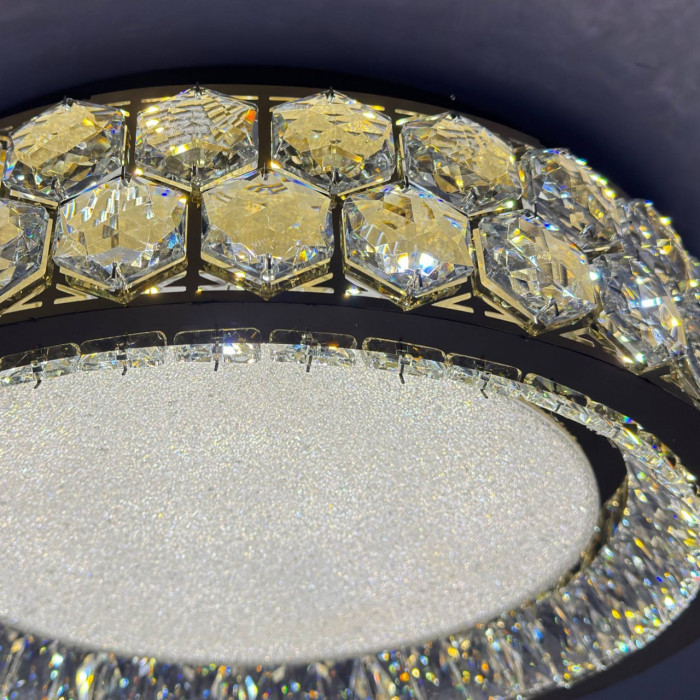 - Круглая форма с хрустальными вставками — мягкий блеск и объем света.
