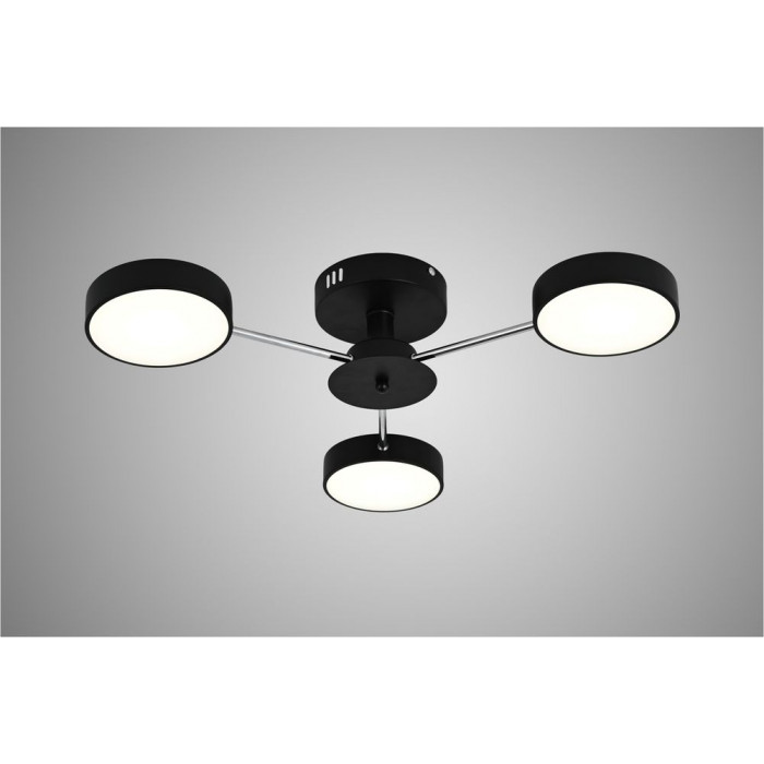 Светодиодная потолочная люстра на 3 источника света – стильное решение для современного интерьера. Она сочетает минималистичный дизайн с черным каркасом и хромированными деталями, что придает элегантности и современности любой комнате. Встроенные led-лампы мощностью 72 Вт обеспечивают яркое и равномерное освещение, а пульт дистанционного управления с диммером позволяет регулировать яркость и цветовую температуру света от холодного до теплого. Особым преимуществом является режим «ночник», который создает мягкую и комфортную подсветку в ночное время. Благодаря компактным габаритам (диаметр 68 см, высота 12 см) люстра легко монтируется на планку и подходит для гостиной, спальни или офиса. Это не просто освещение, а стильный акцент интерьера, который дарит комфорт и современный вид вашему дому.