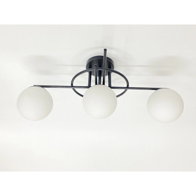 Потолочная люстра совмещает классическую элегантность и современную функциональность. Черный металлический каркас в сочетании со сферическими стеклянными плафонами создает стильный и гармоничный вид, подходящий к любому интерьеру. Компактные размеры (600×430×260 мм) позволяют устанавливать люстру даже в помещениях с низкими потолками. Три источника света обеспечивают равномерное рассеяние, а лампы с цоколем E27 можно выбирать самостоятельно, подбирая оптимальную яркость и цвет света.