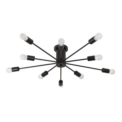 Современная потолочная люстра в стиле «паук» – это яркий акцент для интерьера, сочетающий динамический дизайн и функциональность. Конструкция состоит из десяти металлических спорынь, симметрично расположенных вокруг центрального основания, что создает эффект графической паутины. Черный матовый каркас придает модели выразительности и гармонично вписывается в стиле лофт, модерн или индастриал.
