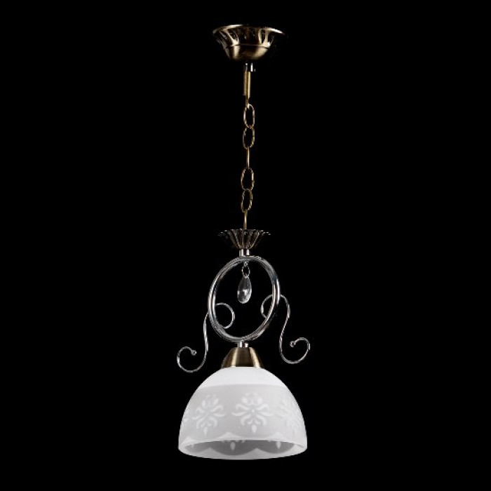 Этот светильник – утонченное сочетание классики и современного блеска. Металлический каркас в бронзово-хромовом исполнении придает глубину и контраст, а стеклянный плафон диаметром 15 см мягко рассеивает свет, создавая уютную атмосферу. Декоративные элементы на подвесе придают модели характер, не перегружая пространство.