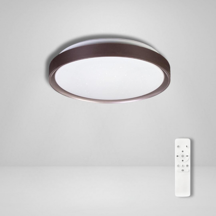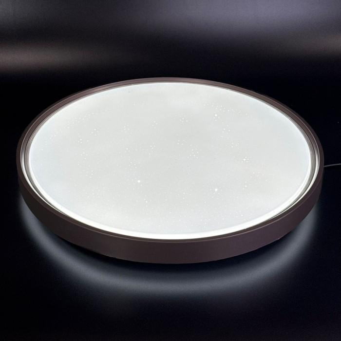 Для максимального удобства в комплекте с люстрой поставляется пульт дистанционного управления, что позволяет легко регулировать режим освещения и выбирать желаемую яркость и цвет света. Элегантный дизайн с коричневой окантовкой гармонично сочетается с современными интерьерами спален и придает им стиль и изысканность.