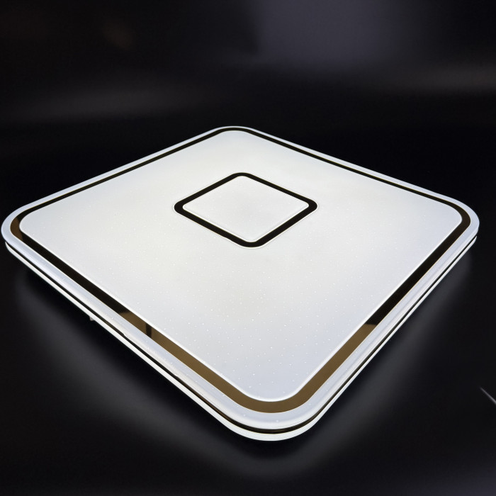 LED люстра управляется с помощью пульта. Им можно включить или выключить светильник, изменить цвет свечения: теплый белый свет 3000К (подойдет для создания спокойной атмосферы вечером), нейтральный (для повседневных дел) и холодный белый свет 6500К для более точных работ (например, шитье) и изменять яркость под ваши потребы . Достаточно уместным будет размещение люстры в спальне, потому что не придется вставать с кровати для отключения светильника перед сном.