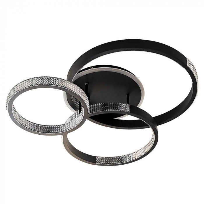 Этот накладной светодиодный светильник – визуально динамическая композиция из трех переплетенных колец, сочетающая геометрию, блеск и контроль. Черный корпус с кристаллическими акцентами создает глубину, а встроенные LED-элементы SMD 2835 обеспечивают мощность до 90 Вт и световой поток 5400 люменов достаточно для освещения просторной комнаты, студии или зоны отдыха.