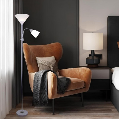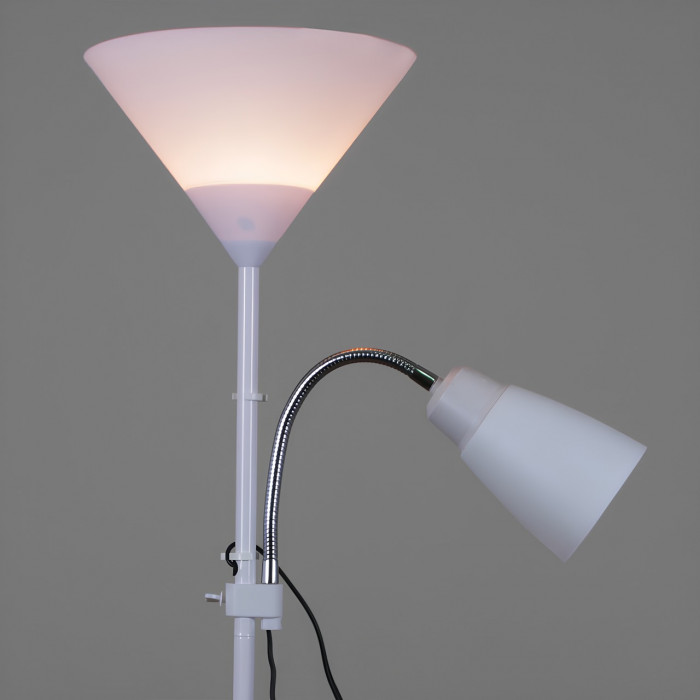 Торшер имеет высоту 180 см и оснащен двумя независимыми источниками света: