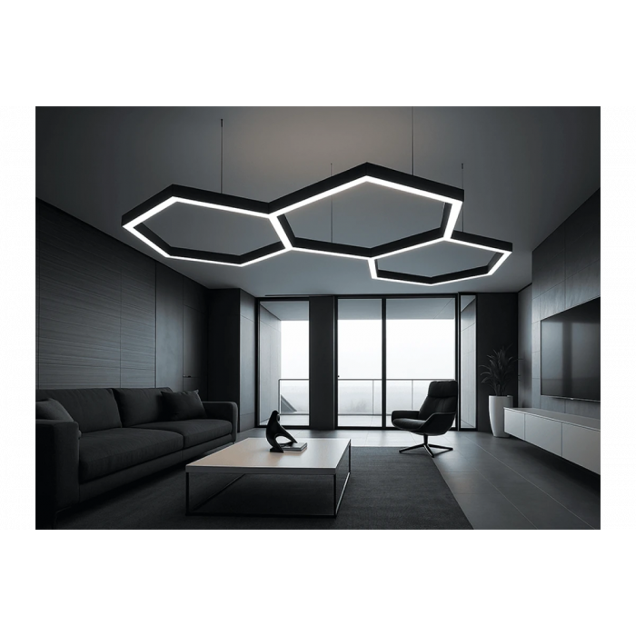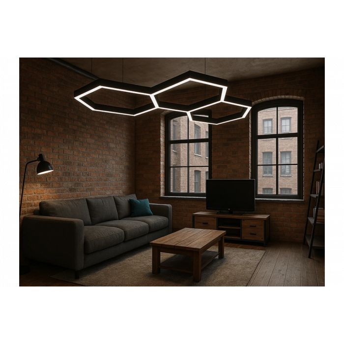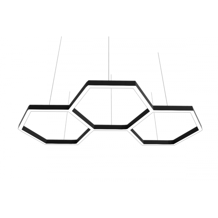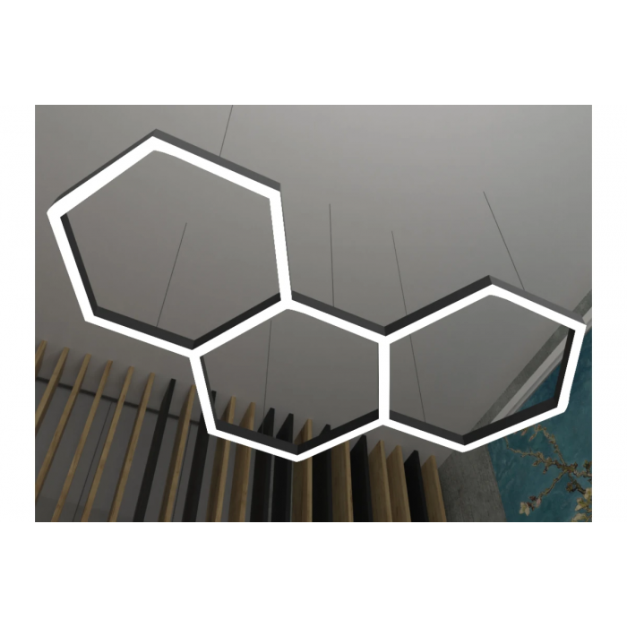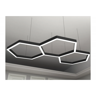 Современный LED-светильник "Соты" - это стильное и мощное решение для просторных помещений, требующих интенсивного освещения и выразительного акцента в интерьере. Дизайн в форме трех шестиугольников на подвесах создает геометрическую динамику, гармонично сочетающуюся с минимализмом, хай-теком или лофтом.