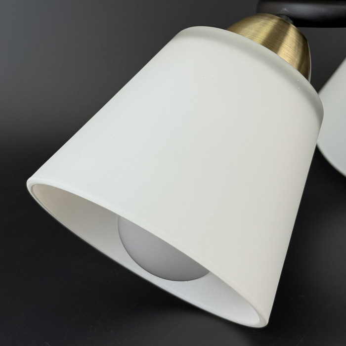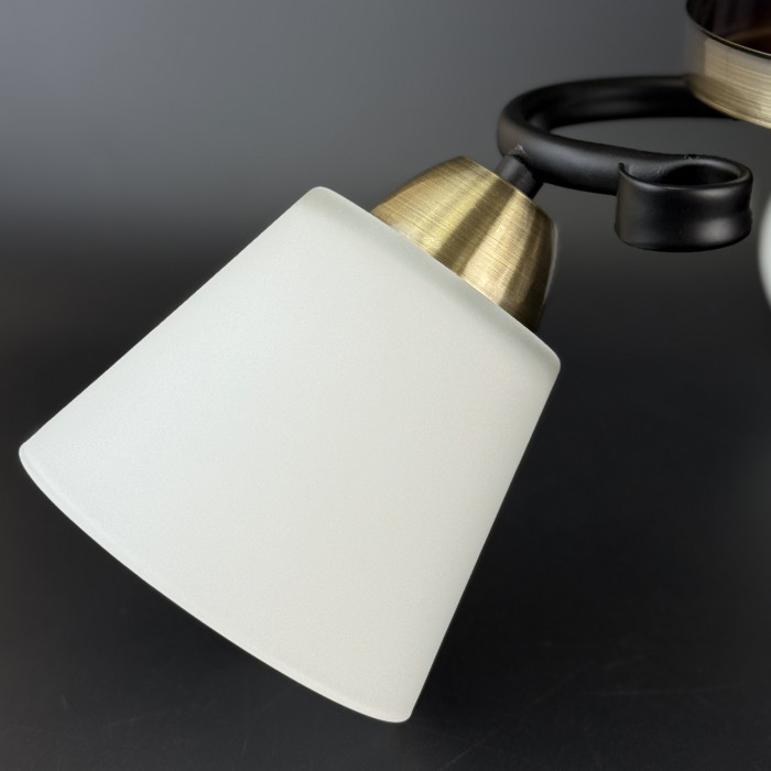 Эта изящная потолочная люстра на три плафона – удачное сочетание сдержанной классики и современной графики. Ее каркас из прочного металла, выполненный в стильном дуэте бронзового и черного цвета, гармонично дополнен плавными линиями, придающими легкость и динамику. Три матовых стеклянных плафона слегка расширяются вниз, мягко рассеивая свет, заполняющий комнату теплом и уютом. Благодаря длине 520 мм и высоте 230 мм, люстра подходит как для просторных, так и для стандартных помещений с низкими потолками. Она прекрасно смотрится в гостиной, спальне, прихожей или даже на кухне. Светильник оснащен патронами E27 и поддерживает как энергоэффективные LED-лампы, так и классические лампы накаливания мощностью до 60 Вт. Простой крепеж на планку обеспечивает надежную фиксацию, а декоративные детали придают элегантности без излишеств. Это не просто освещение – это характер вашего интерьера.