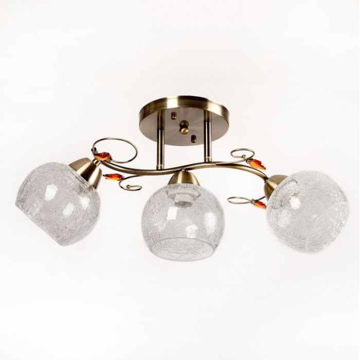 Современная потолочная люстра с металлическим каркасом бронзового цвета и стеклянными плафонами с уникальным «трещиноподобным» эффектом, создающим неповторимую игру света в комнате. Благодаря трем плафонам освещение равномерно распределяется по всему помещению. Размеры люстры: 52×20×23 см. Патроны E27 совместимы со светодиодными лампами любой мощности и лампами накаливания до 60 Вт. Простой монтаж потолочной планки делает установку быстрой и удобной. Идеально подойдет для гостиной, спальни или прихожей, придавая интерьеру современный и элегантный вид.