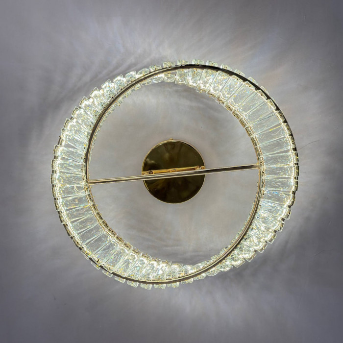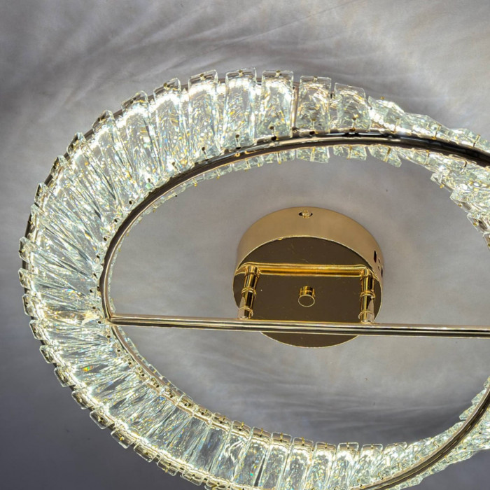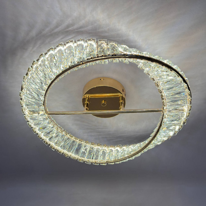 Современный потолочный светильник LED мощностью 60 Вт – это утонченное сочетание технологий и эстетики. Хрустальное кольцо, закрепленное на металлической основе, создает мягкий рассеянный свет, формирующий элегантный ореол на потолке. Благодаря симметричному дизайну и золотистым акцентам светильник гармонично вписывается в интерьеры в стиле модерн, минимализм или арт-деко. Освещает площадь 12–15 м², имеет компактные размеры — 50 см в ширину и 14 см в высоту, работает от стандартного напряжения 220 V. Оснащен пультом управления с функцией димера, что позволяет регулировать яркость в соответствии с настроением или сценарием. Изготовлен из металла и акрила, он сочетает долговечность, энергоэффективность и эмоциональную глубину – идеальный выбор для спальни, гостиной или зоны релакса.