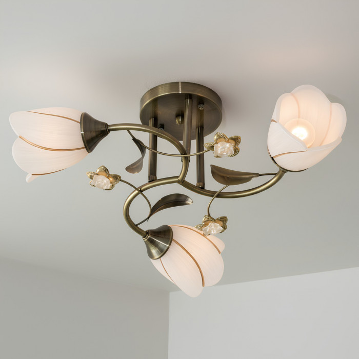Оптимальные размеры 520×520×165 мм делают люстру идеальным решением для гостиной, спальни или кухни средних и небольших размеров. Металлический каркас придает изделию прочность и изысканность, а декоративные цветочные элементы подчеркивают его стиль и оригинальность.