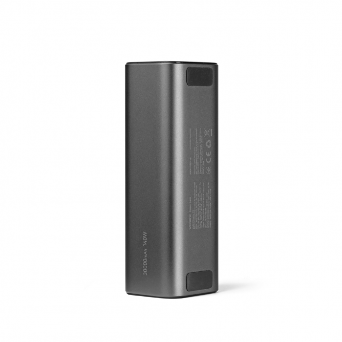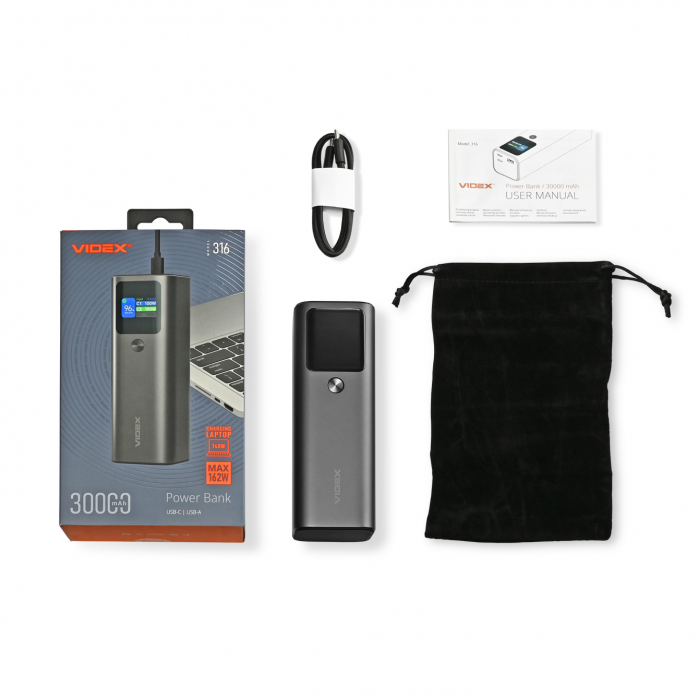 Этот повербанк емкостью 30000 мАч создан для тех, кому нужна действительно мощная и быстрая зарядка в любых условиях. Благодаря поддержке Power Delivery до 140W через USB-C, он может заряжать не только смартфоны или планшеты, но и полноценные ноутбуки, игровые консоли и другие ресурсоемкие устройства. Суммарная мощность до 162W позволяет одновременно снабжать энергией несколько гаджетов без потери скорости. Входная зарядка также мощная – до 140W, поэтому полное восстановление заряда занимает около 2 часов (при использовании совместимого адаптера). Оснащенный тремя портами (2×USB-C и 1×USB-A), повербанк поддерживает современные протоколы быстрой зарядки. Интегрированный дисплей на корпусе в реальном времени отображает процент заряда, текущую мощность и активные порты. Благодаря корпусу из алюминиевого сплава и продуманным габаритам 155x53x50,5 мм, это устройство сочетает в себе выносливость, стиль и практичность для ежедневного или профессионального использования.