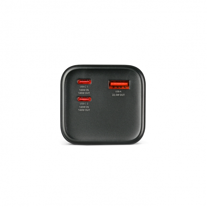 - Выходное напряжение: USB-A: DC 5V/3A, 9V/2A, 10V/2.25A, 12V/1.5A (22.5W); USB-C 1/2: DC 5V-15V/3A, 20V/5A, 28V/5A (PD140W)