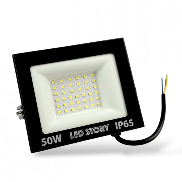 Led прожектор мощностью 50W – это оптимальное сочетание компактности и высокой яркости для наружного освещения. Благодаря световому потоку 8000 люмен он эффективно освещает дворы, фасады построек, гаражи или хозяйственные зоны.
