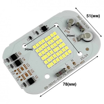 Для подключения LED матрицы 50 Вт не потребуется драйвер (драйвер вмонтирован в корпус матрицы). Для подключения светодиода, достаточно подсоединить провод 220 В, обязательно соответствующий радиатор, с идеально ровным полем посадки и обычно термопастой. Световой поток - 4250Lm
