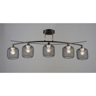 Пять металлических сетчатых плафонов мягко рассеивают свет, а патроны E27 позволяют использовать разные типы ламп, в том числе декоративные Edison. Благодаря размеру 870×240×270 мм, люстра идеально подходит для просторной кухни, столовой, гостиной или open-space зоны.