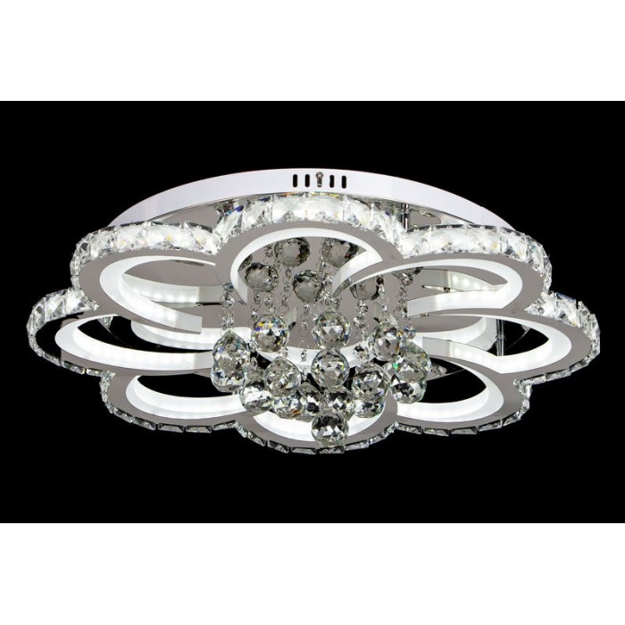 Led-люстра потолочная с хрусталем и хромированным каркасом – это сочетание современного хай-тек дизайна и элегантного блеска хрусталя. Встроенные светодиоды мощностью 148 Вт обеспечивают яркое и равномерное освещение помещения, а акриловые детали мягко рассеивают свет, создавая гармоничную атмосферу.