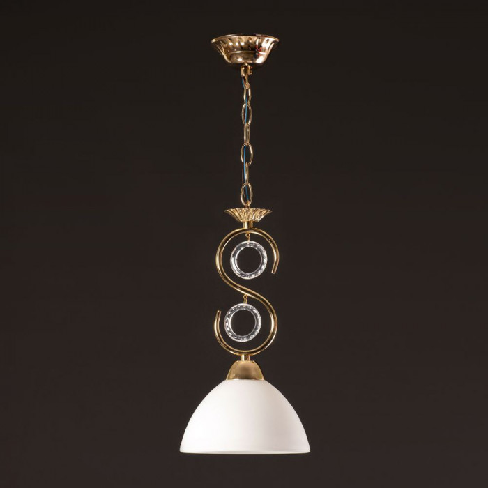 Этот светильник совмещает компактность и декоративную силу. Золотой металлический каркас придает интерьеру тепло и изысканность, а белый стеклянный плафон диаметром 17 см обеспечивает мягкий, равномерный свет. Декоративная вставка в верхней части создает визуальный ритм, делая модель заметной даже в минималистическом пространстве.