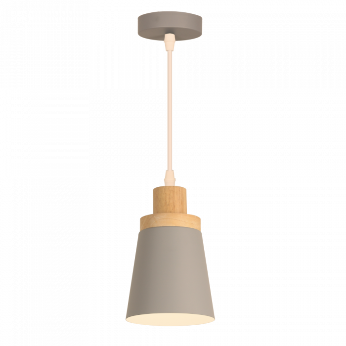 Подвесной светильник в стиле скандинавского минимализма совмещает простоту формы с естественной эстетикой. Конический плафон с серым матовым покрытием гармонично дополнен деревянной вставкой, что придает тепла и текстурной глубины. Такой дизайн выглядит сдержанно, но выразительно – идеально для современных интерьеров, где важна чистота линий и естественные акценты. Модель оснащена цоколем E27, совместимым с лампами мощностью до 60 Вт, включая LED. Работает от стандартной сети 230 В, обеспечивающей стабильное питание. Корпус изготовлен из металла, а декоративная вставка – из натурального дерева. Подвес на шнуре позволяет регулировать высоту, адаптируя светильник к разным зонам — кухонному острову, обеденному столу, рабочей поверхности или спальне.