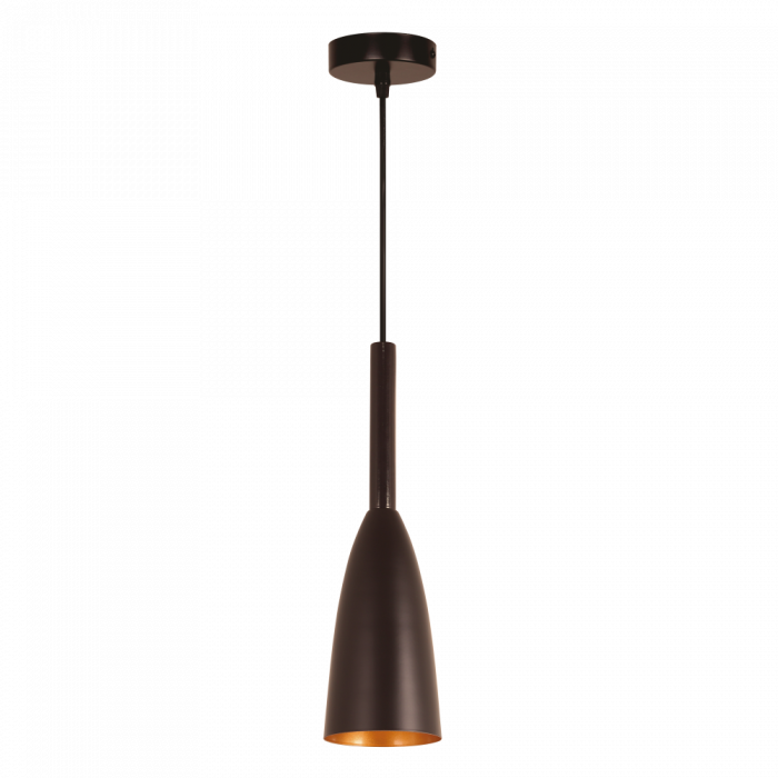 Современный подвесной светильник с вытянутым конусообразным плафоном в глубоком черном матовом цвете — элегантное решение для интерьеров в стиле модерн, минимализм или индастриал. Внутреннее покрытие в теплых золотистых тонах создает мягкий, уютный свет, придающий простор глубине и изысканности.