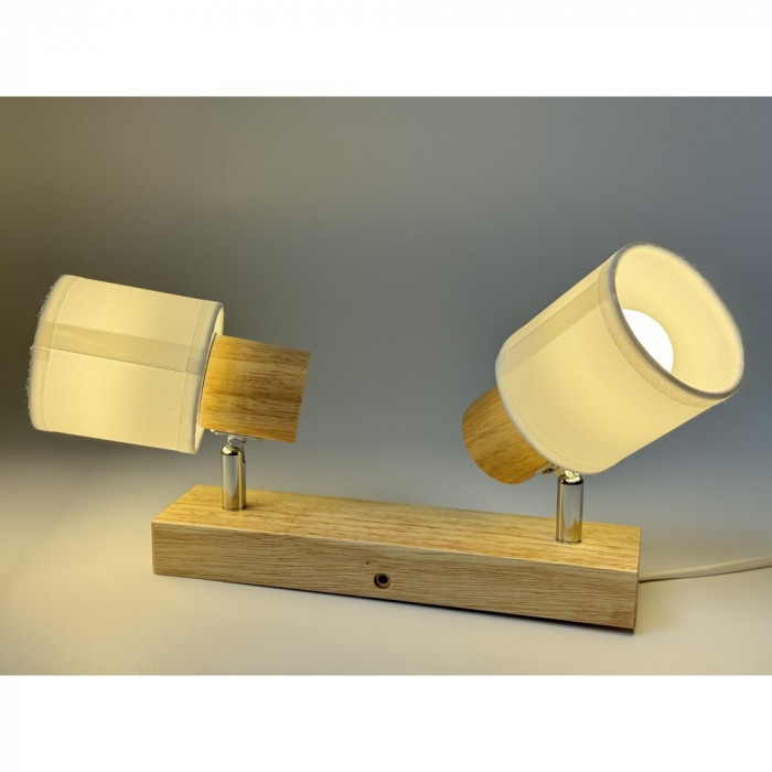 Этот стильный двухплафонный светильник – идеальное сочетание естественной эстетики дерева и мягкости текстильного света. Лаконичное прямоугольное основание из натурального дерева придает простору теплу, а тканевые плафоны цвета айвори дарят приятный рассеянный свет.