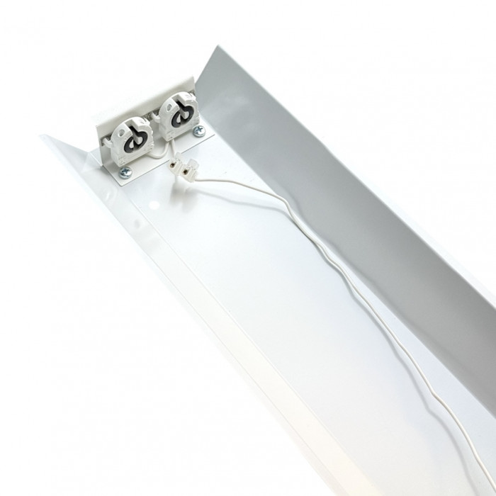 Трассовый открытый светильник рассчитан под использование линейной лампы Т8. Светильник сделан таким образом, что за счет отражателя свет направляется вниз под углом 45 град, а не рассеивается по сторонам, как у других светильников. Светильник изготовлен из оцинкованной стали, покрытой защитным слоем светорассеивающего полимера. Полимер устойчив к прямому солнечному свету, влаге и низким температурам и не приводит к световым бликам. Светильники можно собирать в цепь, производя осветление любой длины.
