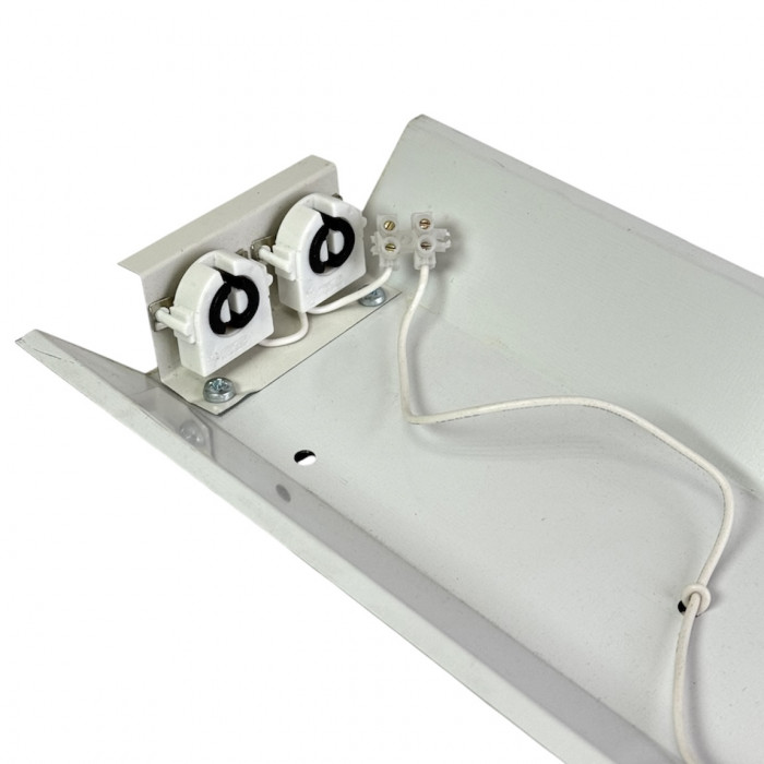 Трассовый открытый светильник рассчитан под использование линейной лампы Т8. Светильник сделан таким образом, что за счет отражателя свет направляется вниз под углом 45 град, а не рассеивается по сторонам, как у других светильников. Светильник изготовлен из оцинкованной стали, покрытой защитным слоем светорассеивающего полимера. Полимер устойчив к прямому солнечному свету, влаге и низким температурам и не приводит к световым бликам. Светильники можно собирать в цепь, производя осветление любой длины.