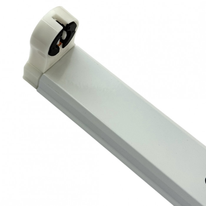 Светильник Т8 600 мм предназначен для установки одной LED-лампы, металлический корпус, с пластиковыми держателями, сделан по умолчанию на двухстороннее подключение ламп. В целях безопасности для транспортировки пластиковые держатели ламп сняты и спрятаны в самую балку, их необходимо будет вытащить и вставить на место. Из светильника выходят 2 проводка, длиной 10см, для соединения с сетью 220Вольт, удобнее через клеммную колодку (например Клеммная колодка 222-412 st-02657)
