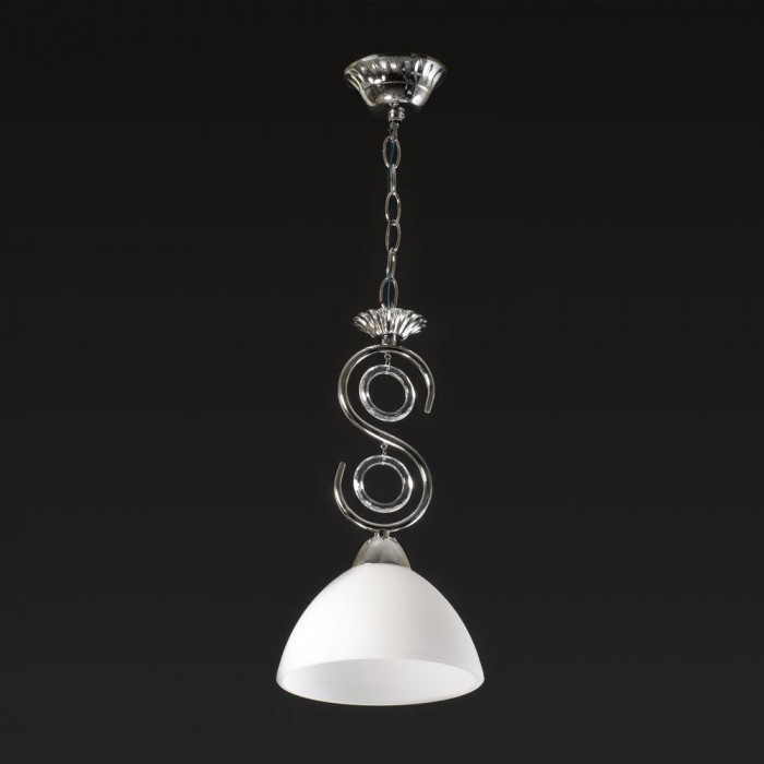 Этот светильник – о чистоте линий и зеркальной четкости. Хромированный металлический каркас придает интерьеру холодную элегантность, а белый стеклянный плафон диаметром 17 см мягко рассеивает свет, не теряя четкости форм. Декоративная деталь в верхней части создает визуальный баланс между техничностью и стилем.