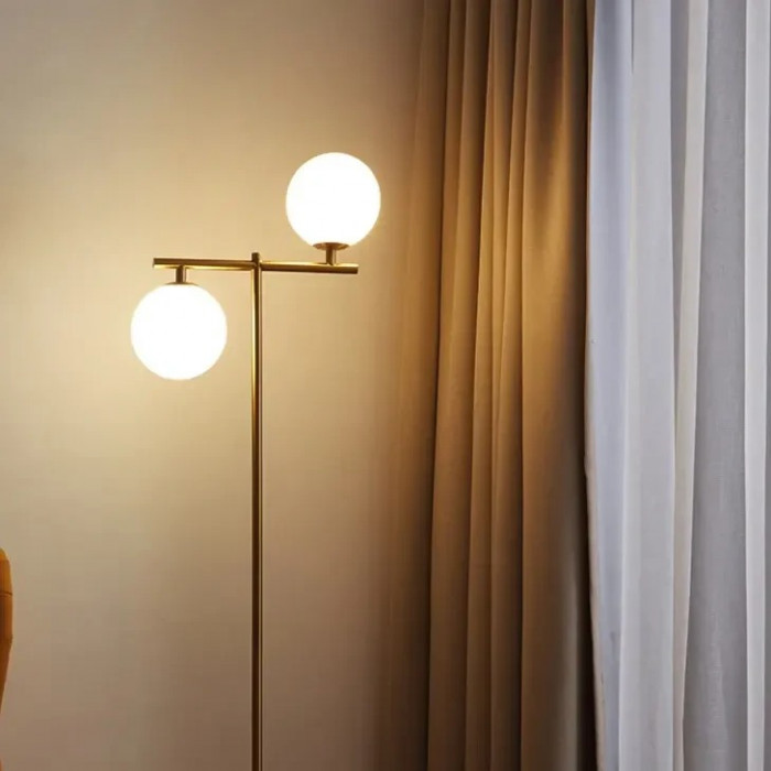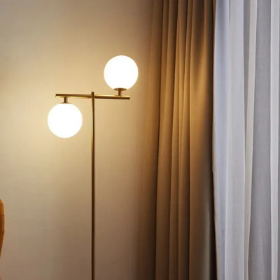 Изысканный напольный торшер с двумя стеклянными плафонами – это не просто светильник, а полноценный элемент декора, придающий интерьеру характер, баланс и стиль. Благодаря своему современному дизайну в золотом и элегантной геометрии, торшер органично вписывается в интерьеры в стиле лофт, модерн, арт-деко, минимализм или скандинавский. Конструкция с двумя источниками света на патрон E27 позволяет создать мягкое, зонированное освещение, идеально подходящее для чтения, работы или вечернего отдыха.