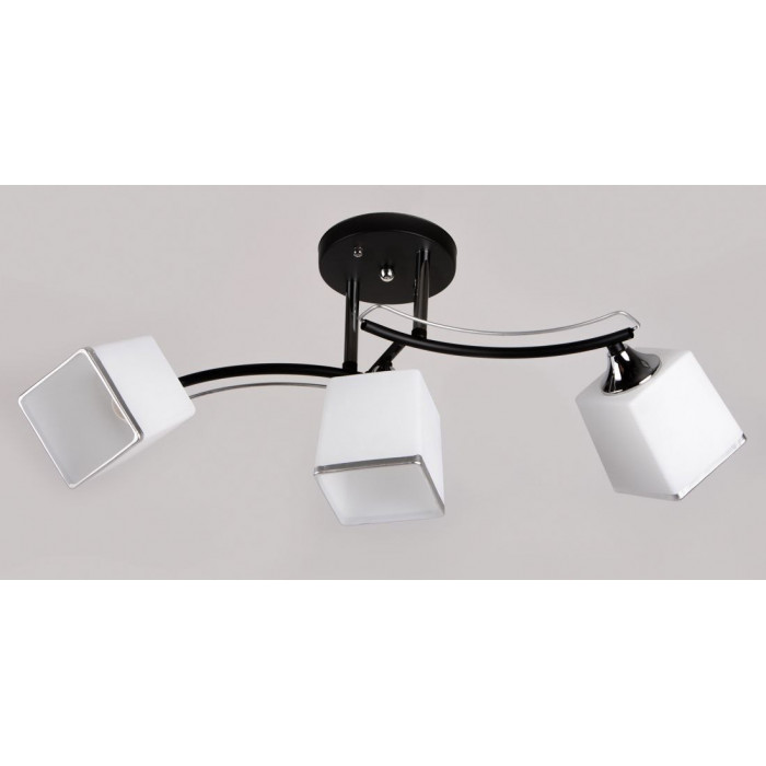 Потолочная люстра с тремя стеклянными плафонами — графическая, современная, функциональная. Черный металлический каркас с плавными изгибами поддерживает три геометрических абажура, каждый из матового стекла с четким контуром. Асимметричное расположение плафонов создает динамику, а мягкий свет – уютную атмосферу. Эта модель идеально подходит к интерьеру, где важна не просто функция, а стиль.