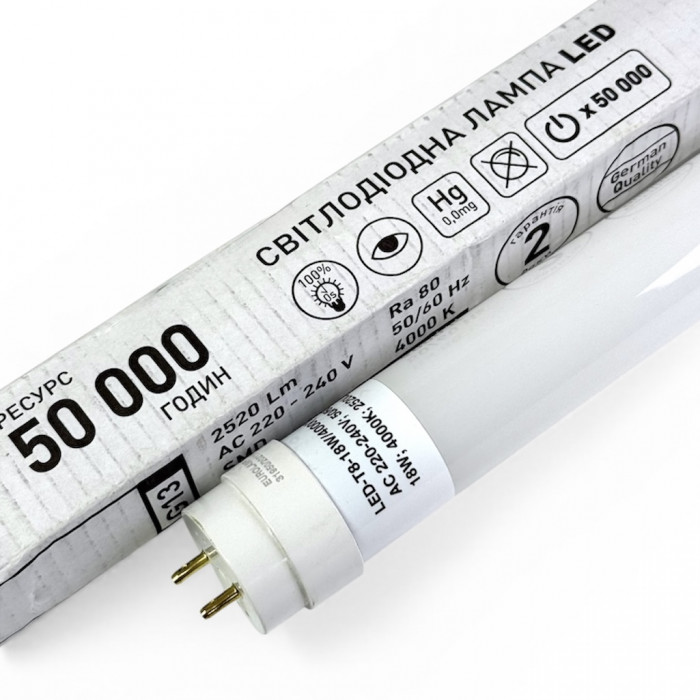 Современная LED-лампа T8 – эффективная и надежная замена люминесцентным лампам. Мощность 18Вт и световой поток 2520 Лм обеспечивают яркое равномерное освещение для бытовых и коммерческих помещений. Лампа длиной 120 см легко монтируется в светильники ЛПД, ЛСП и другие модели с двухсторонним подключением без необходимости изменения конструкции.