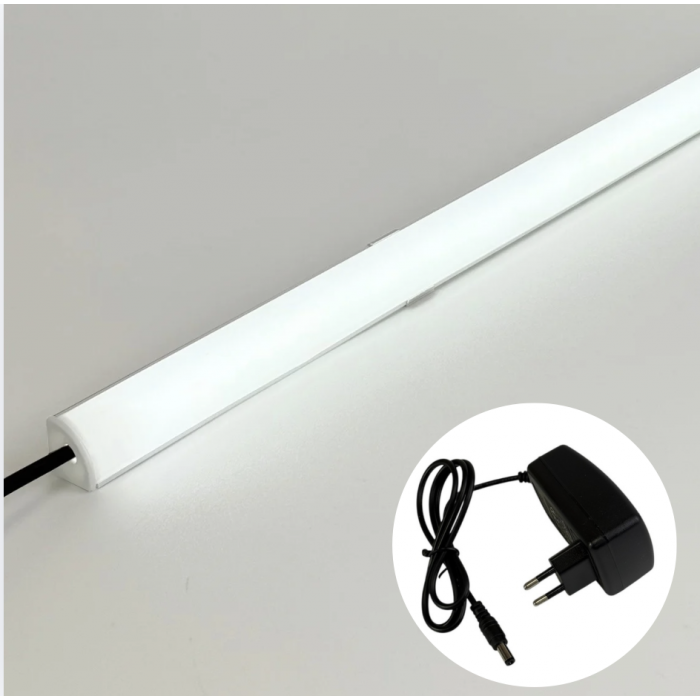 Комплект включает в себя блок питания 12В 2А (24Вт) с розеточным штекером 2.5×5.5мм, что гарантирует стабильную работу и простое подключение без дополнительных настроек или пайки. Благодаря готовому комплекту подсветка легко устанавливается на любой мебельной поверхности, а ее современный дизайн органично дополняет кухонный интерьер. Единственным ограничением является фиксированная длина 2м, но для индивидуальных проектов можно воспользоваться отдельными комплектующими для сборки нужной длины.